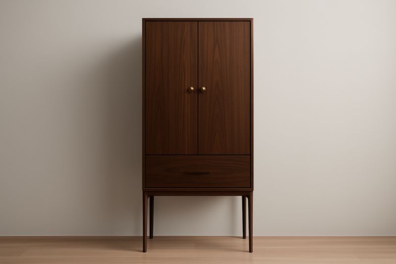 Questo armadio con cassetti si caratterizza per una struttura solida e lineare, che combina ante verticali e cassetti inferiori per un’organizzazione razionale. Lo spazio interno è pensato per appendere e riporre gli abiti, mentre i cassetti offrono una soluzione pratica per gli oggetti di uso quotidiano, ideale per la zona notte o l’area guardaroba.